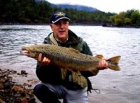 a salmon, Coho, or trout among the pristine beauty of the Puelo. In